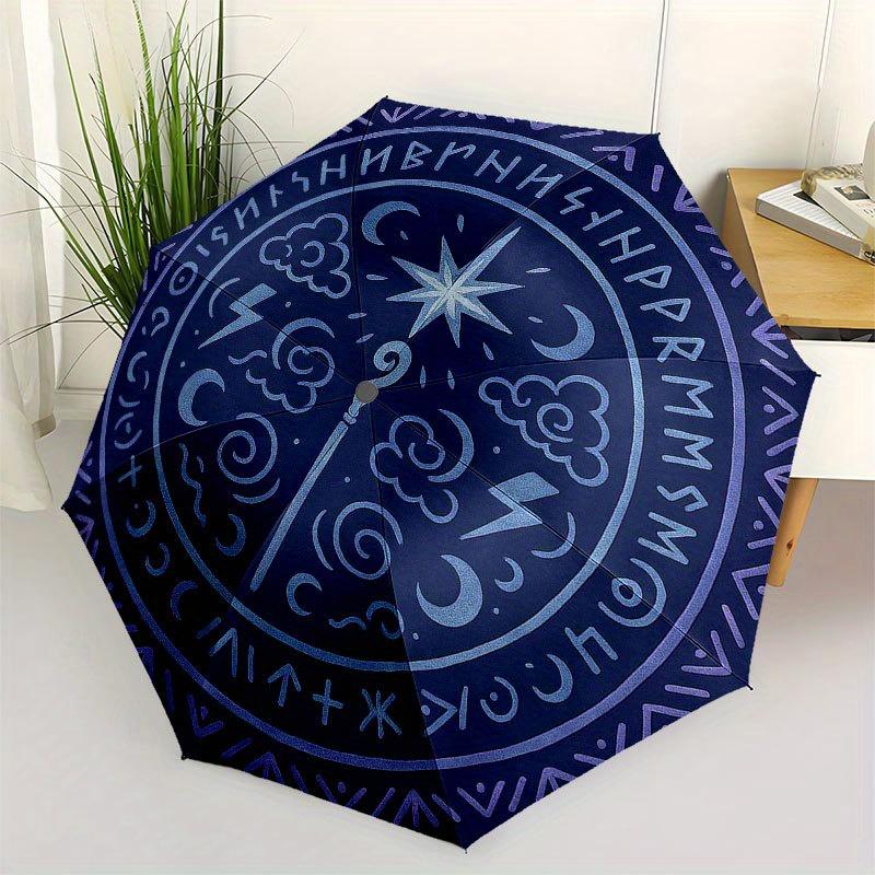 Verzauberter Wetter-Magie-Symbol Runder Teppich Regenschirm, Tragbarer 3-fach Kompakter Regenschirm für Damen & Herren R150