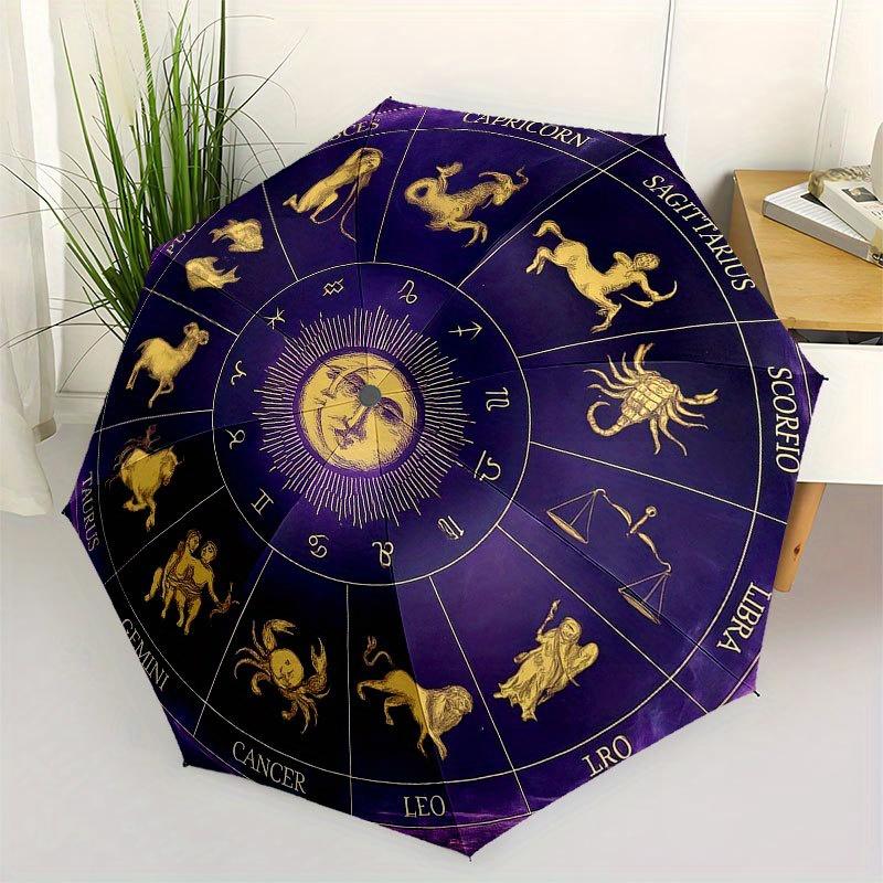 Zodiac Horoscope Astrology Wheel Decor Umbrella, Portable 3-Fold Compact Umbrella for Men & Women R127