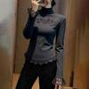 Half High Collar Lace Base Shirt High End Sense Inner Wear Autumn Winter New Style Women Clothing Slim Fit Temperament Mesh Top