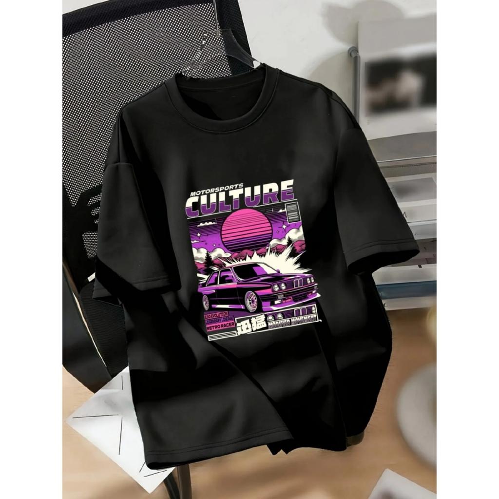 Cartoon-Rennkultur-Print-T-Shirt lässiger und vielseitiger Stil erfüllt die Bedürfnisse für den täglichen Gebrauch und Ausflüge im Sommer