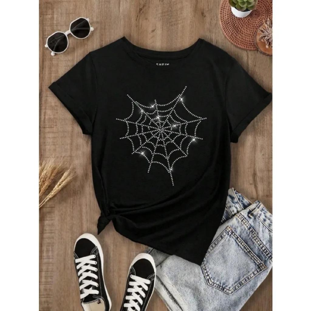 Lässiges kurzärmeliges Damen-T-Shirt mit Spinnenmuster, Sommer-Rundhals-Kurzarm-T-Shirt, Baumwolle Übergröße Harajuku T-Shirt