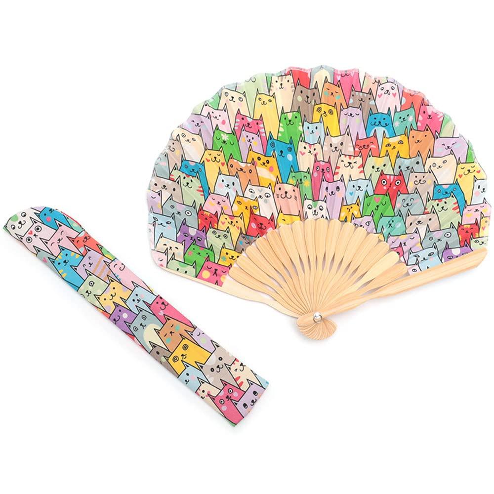Nishikawa Shouroku Shoten Sommer-Faltfächer mit Fächerbeutel, Soleil, Geschenk für Damen, Modischer Faltfächer, Muttertagsgeschenk (Buntes Katzendesign)