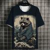 Unisex 2024 T-Shirt Männer Frauen Japanische Samurai-Katze 3D-bedruckte T-Shirts für lässige Mode Lustiges Shirt Top T-Shirt Männer Kleidung