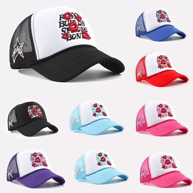 Red lip, wide brim, multi-color letter baseball cap, sunshade, breathable, casual baseball net cap for truck drivers