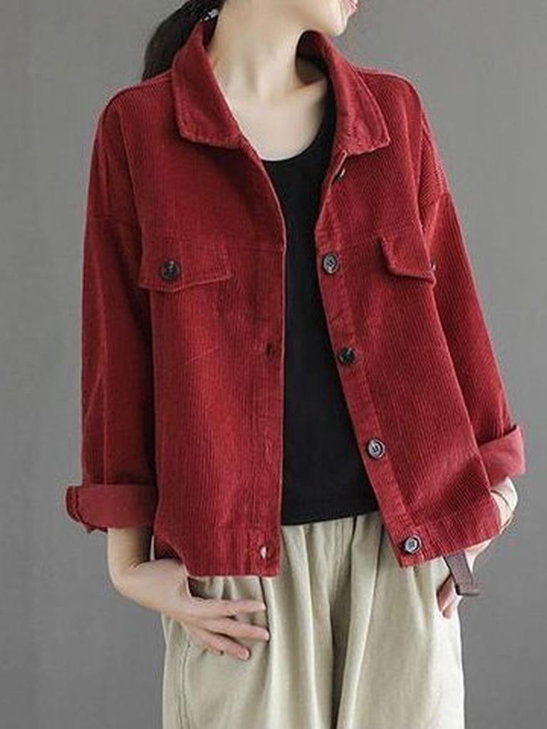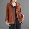 Samt Kord Kürzere Jacke Damen Frühling Herbst Einfarbige Stehkragen Locker Kleine Größe Lässiges Oberteil Retro
