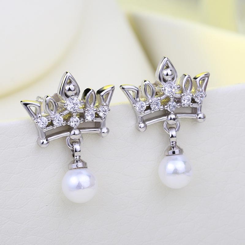 Mode Silberne Nadel Neue Dornenkrone Perle Vintage Ohrstecker Plata Ohrringe Echte Echte Charme Perle