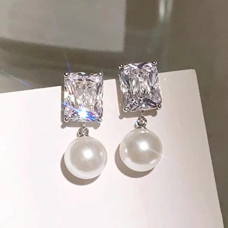 Huitan Elegant Bright CZ Drop Earrings with Imitation Pearl Female Trendy Delicate Ear Accessories Chic Wedding Bridal