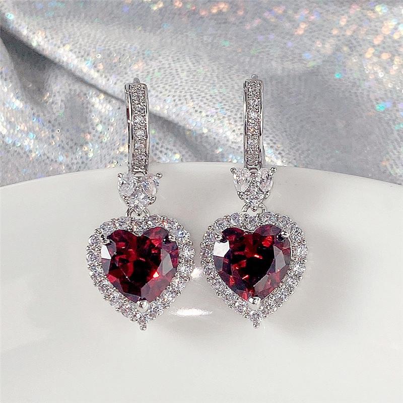 Modische Damen Glänzende Herz CZ Silberne Nadel Steckerohrringe für Damen Rote Blaue Ohrstecker Kristall Valentinstagsgeschenk