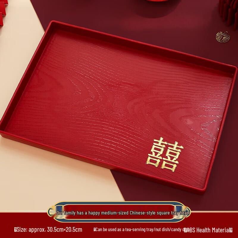Wuhe Rotes Imitationsholz-Serviertablett-Set