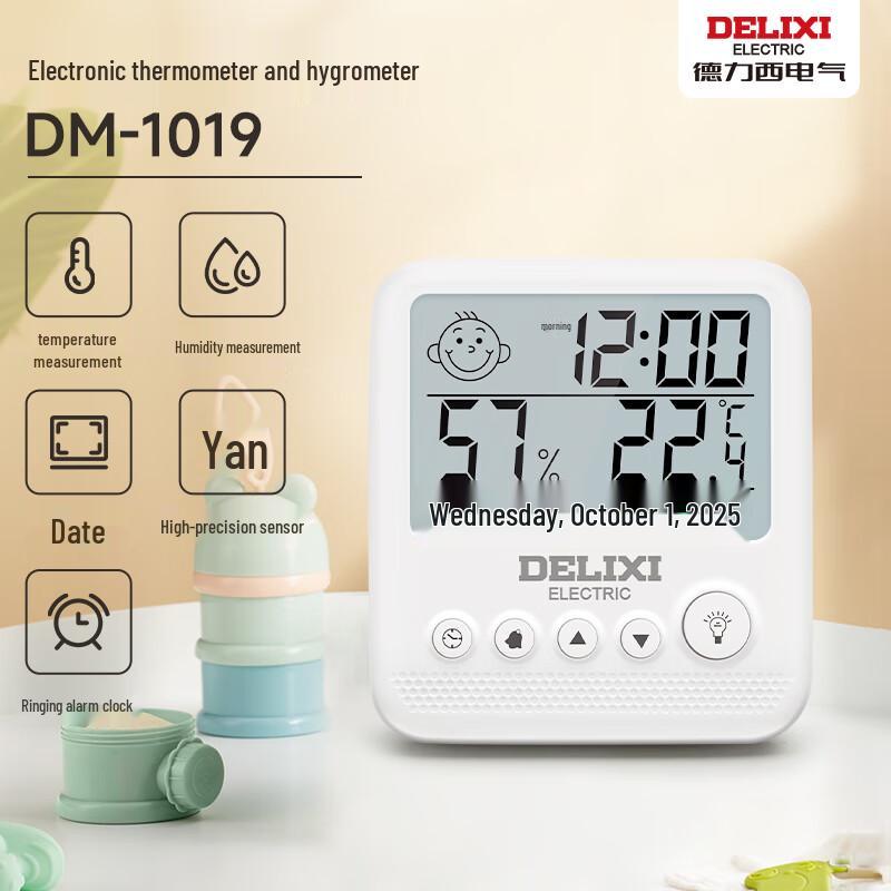 DELIXI ELECTRIC Digital Indoor Thermometer Hygrometer with Alarm & Emoji Display