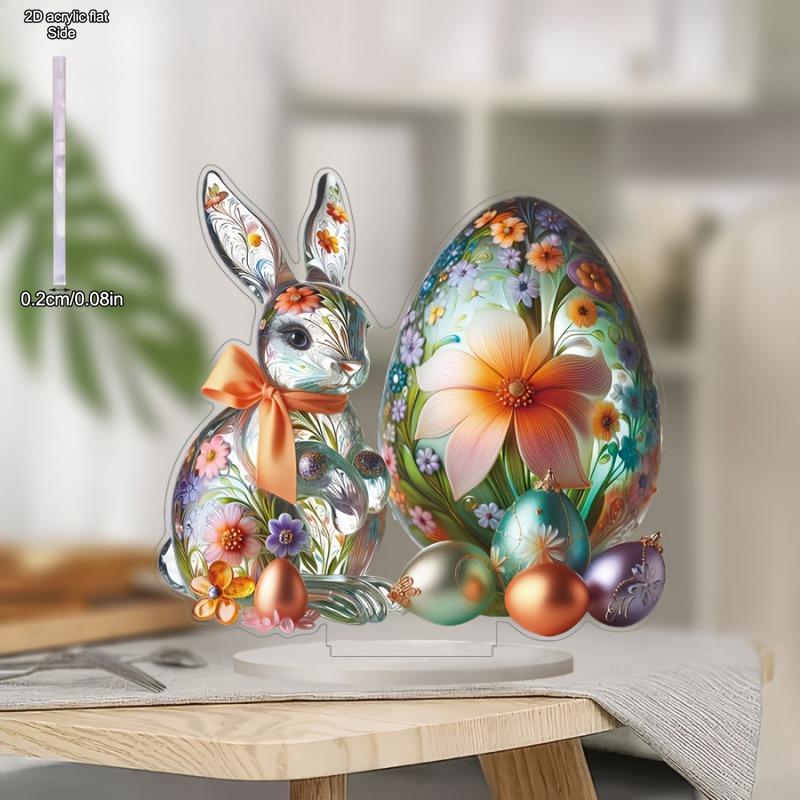 Osterhasen-Schild - Lebendiges buntes Eier- und Blumenakzente-Design, Handwerkskunst, Heimtischdekorationen, Kinderzimmer, Schreibtisch Wohnzimmer