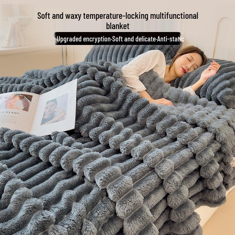Warme Kaninchenfell-Plüsch- und Korallenfleece-Decke: Verdickte Steppdecke für Winter, Frühling und Herbst – Perfekt für Wohnheim, Einzel- oder Doppelbett.