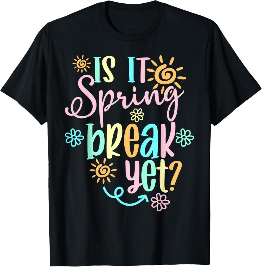 Is It Spring Break Yet Floral Sun Graphic T-Shirt Funny Teacher Casual Cotton Tee