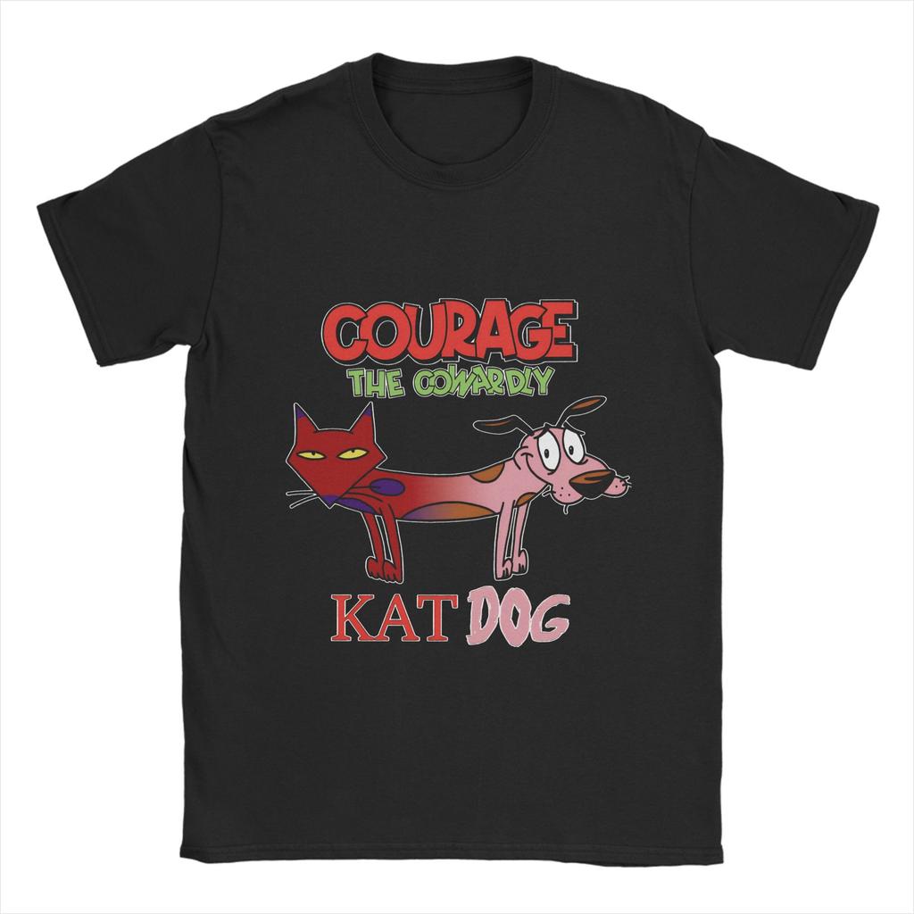 Courage Dog T Shirts Men's Pure Cotton Awesome T-Shirts Round Neck Tee Shirt Short Sleeve Clothing Printed