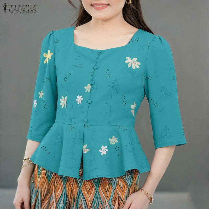 ZANZEA Women Casual Round Neck 3/4 Sleeve Elegant Floral Blouse