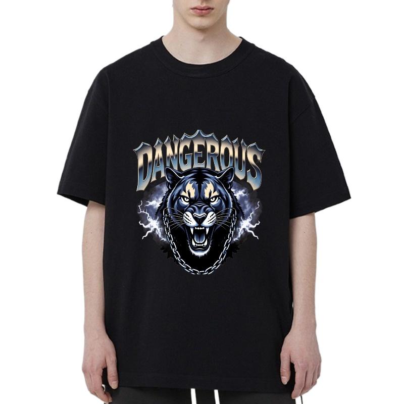 Schwarzes T-Shirt Mit Panther Und Gefährlicher Textgrafik Für Freizeitkleidung