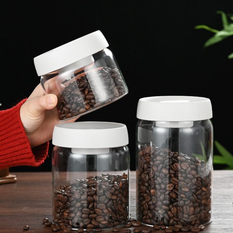 Portable Coffee Bean Container Leakproof Press Vacuum Seal Glass Jar For Travel Kitchen Storage HX6C