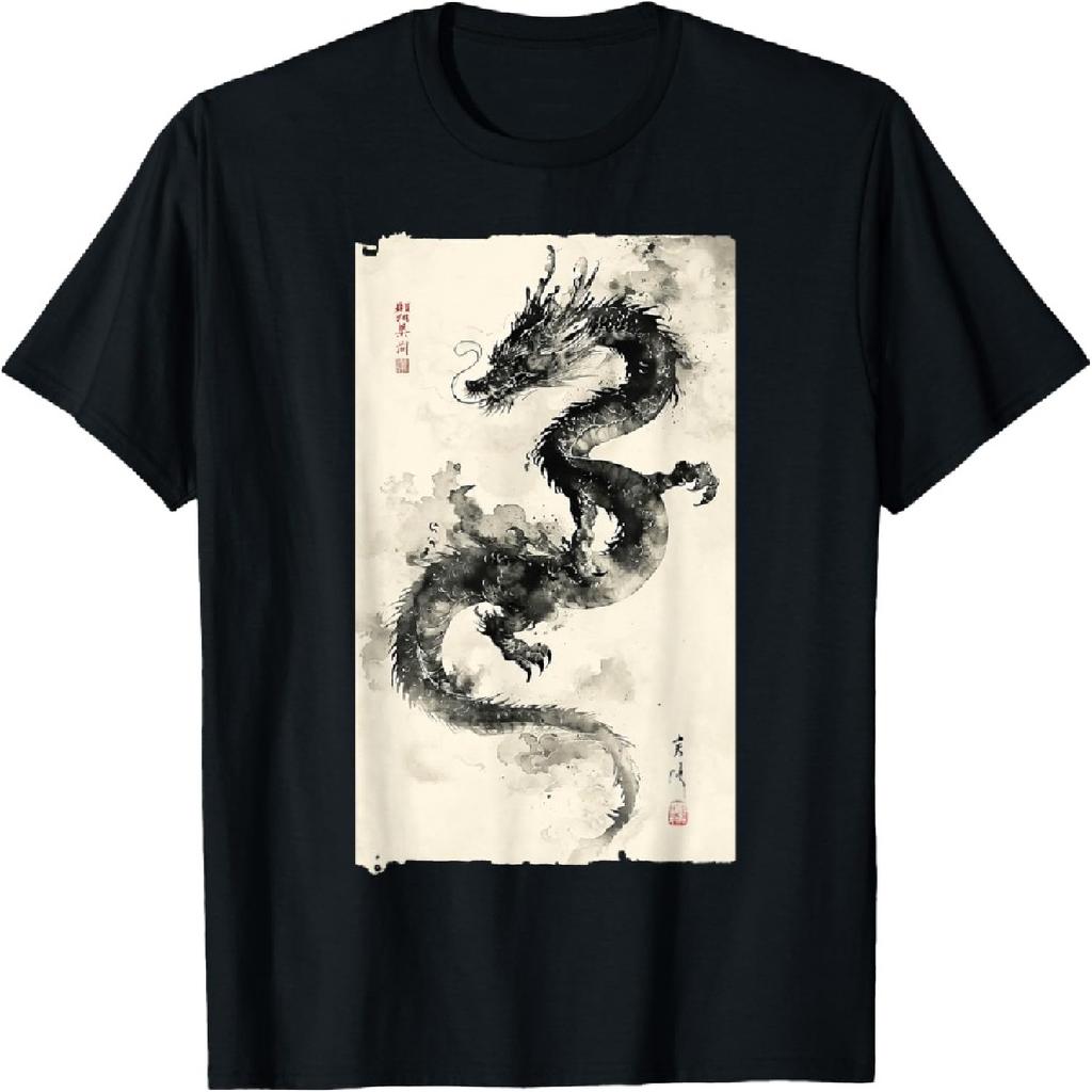 Eastern Dragon Majesty_ Vintage Tuschekunst-Kollektion T-Shirt(1)