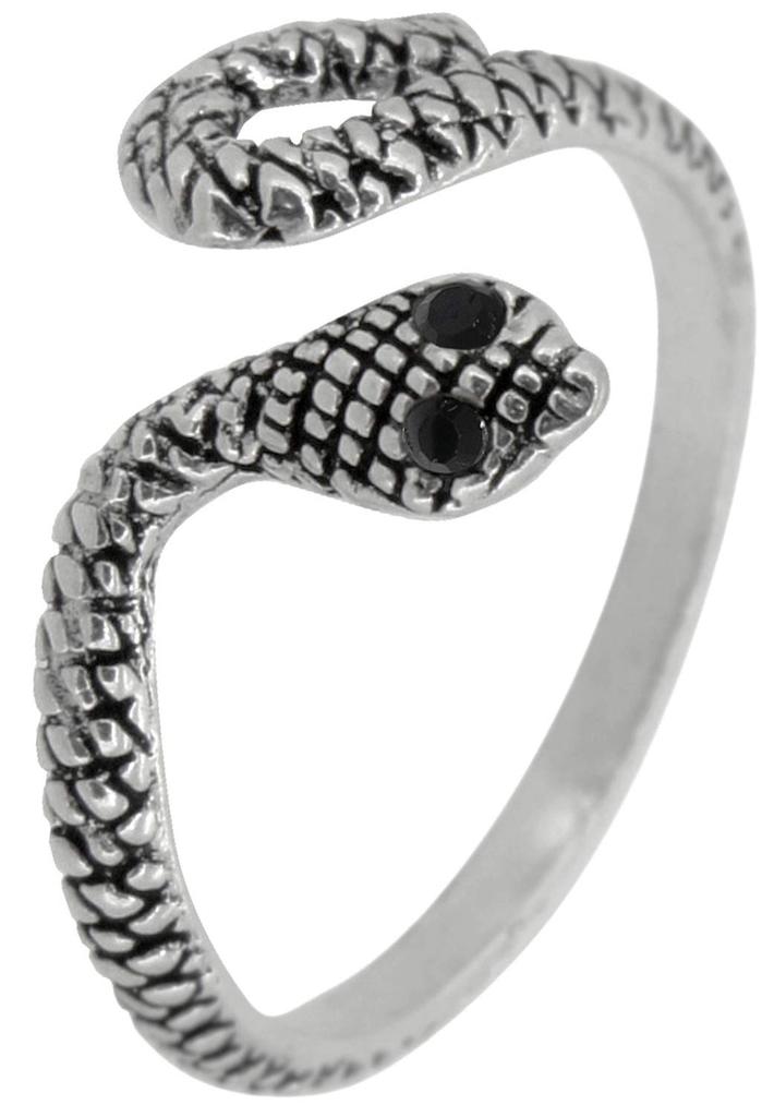 Ein silberner Zehenring mit einem Schlangenmotiv. Funkelnder Zirkonia ist in beiden Augen der Schlange gefasst.