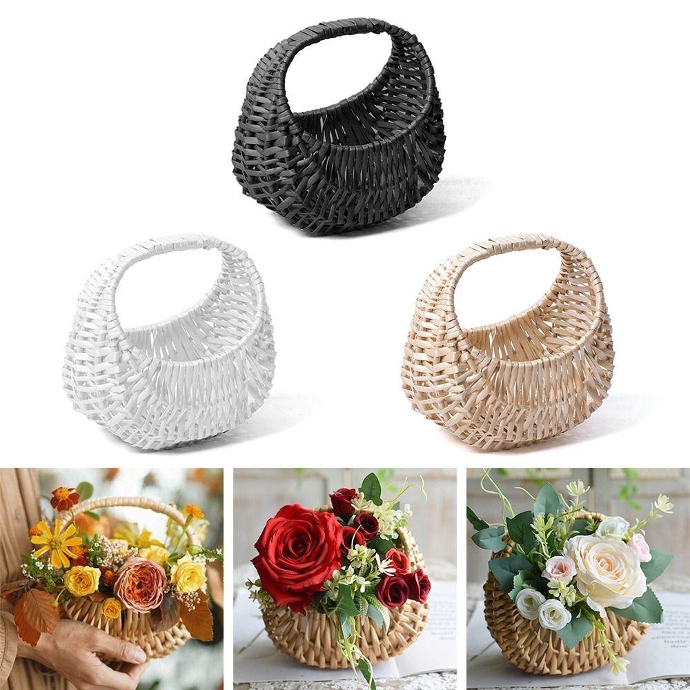 Durable With Handle Flower Basket Willow Woven Half Moon Storage Basket DIY Photography Props Storage Container Home Decoration