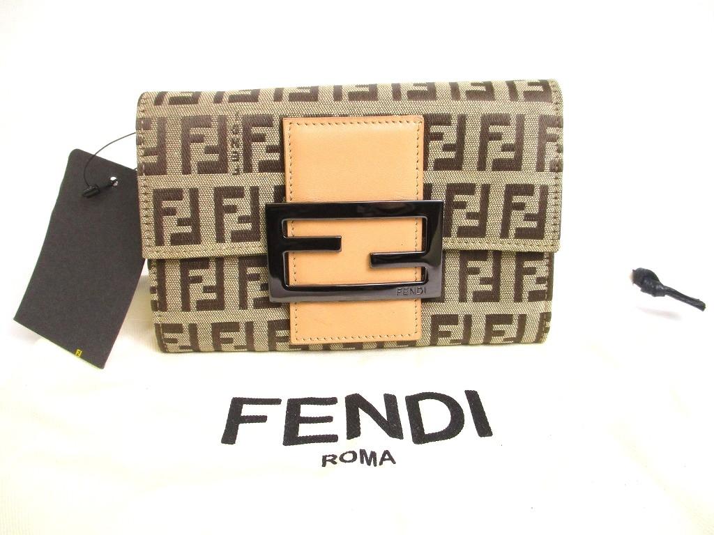 Product : FENDI Zucca Khaki Canvas Brown Leather Bifold Wallet Compact Wallet #b014