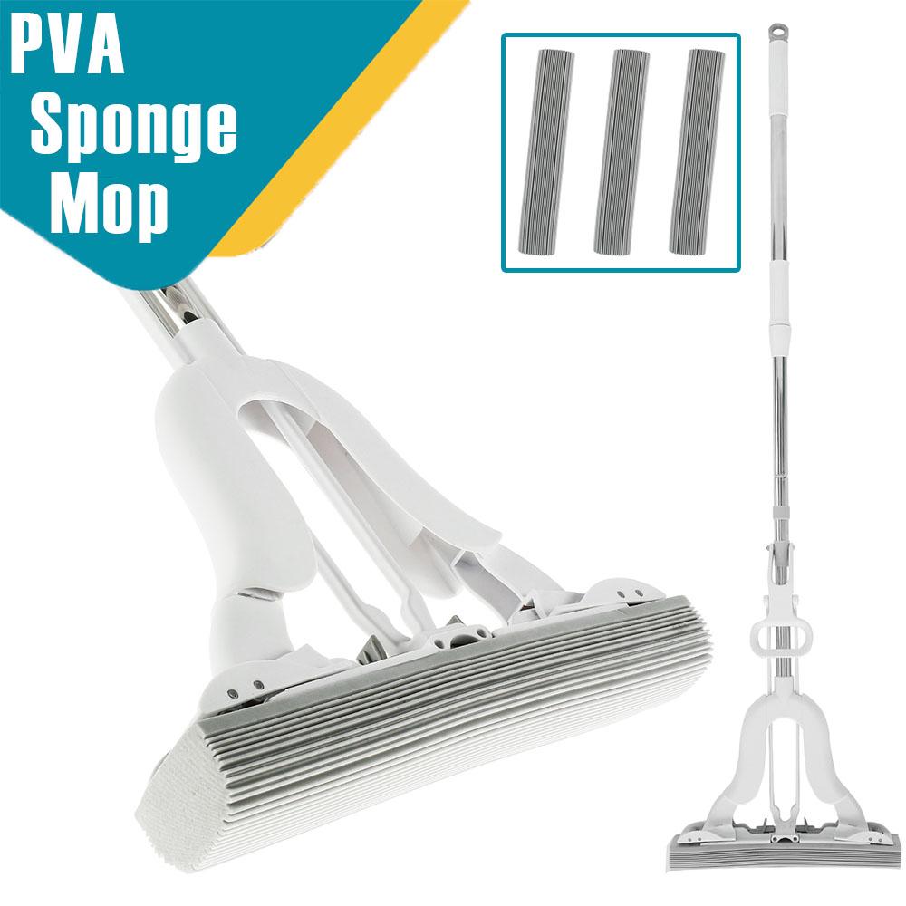 [High-quality Material] This PVA sponge mop is made of high-quality PP, stainless steel and rubber wool (PVA)material which is wear-resistant, odorless, and no scratches to the floor. The PVA sponge mop is soft and has an efficient cleaning for absorb dust, hair, small particles, etc.