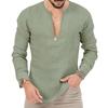 Herren Leinen Langarm T-Shirt, Herren Freizeitjacke, Farbe Tiefes V-Ausschnitt Hemd Für Herren