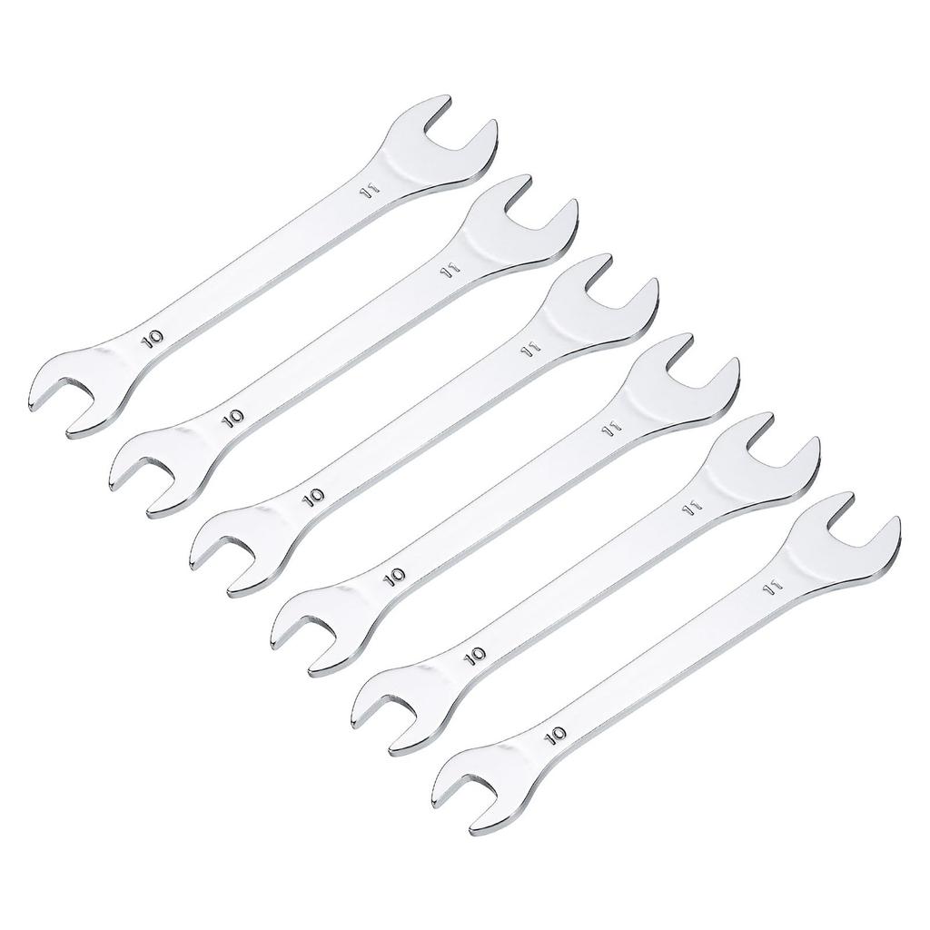 uxcell Set of 10mm x 11mm Metric Mirror Chrome Plated High Carbon Steel Wrenches for Home Maintenance and General Repairs 6-Piece Open-End