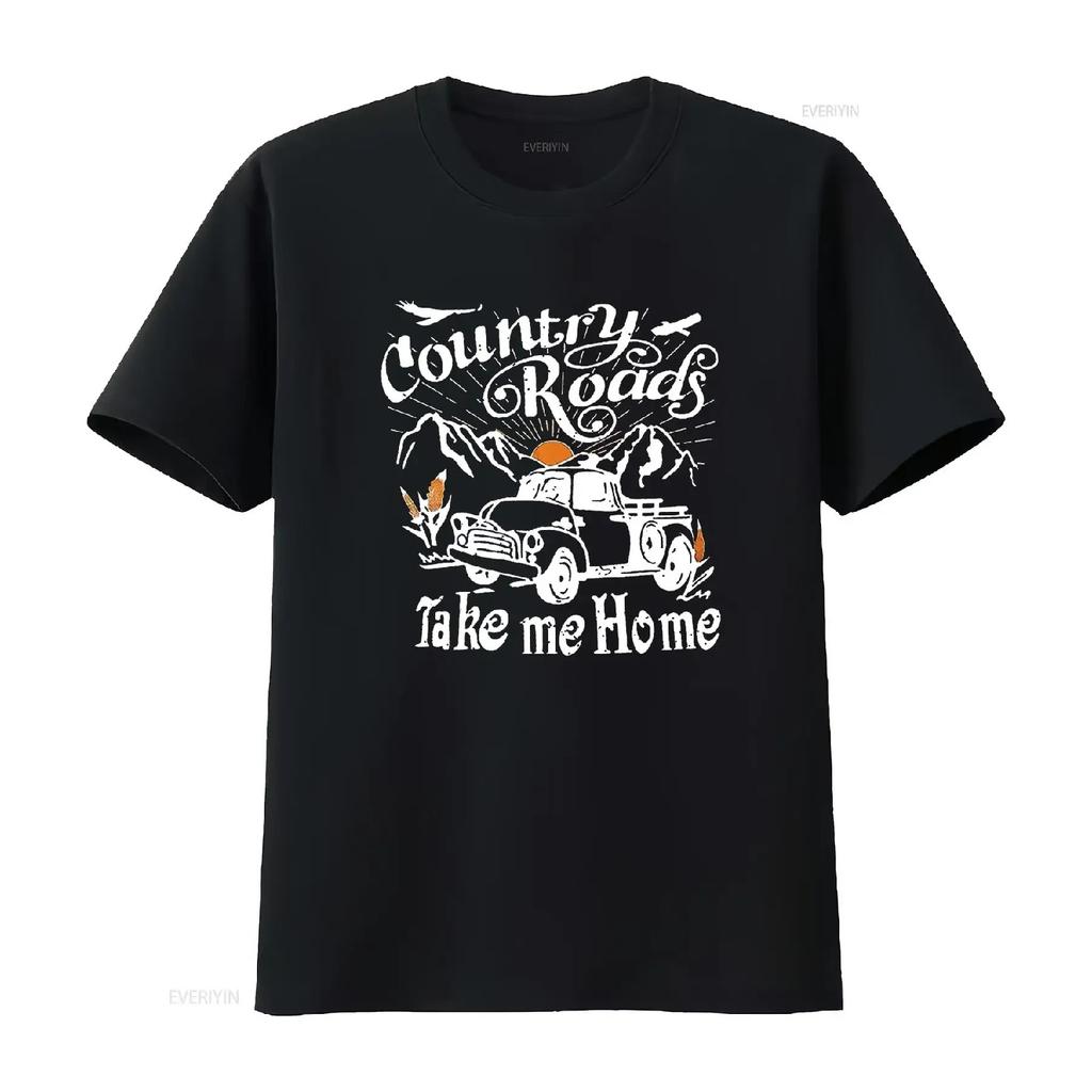 Country Music T Shirt Women Roads Take Me Home Letter Vintage Tops Black X Large vintage Washed Slightly Stretched Comfortable