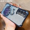 KEYSION Shockproof Plating TPU Phone Case for Samsung S24 S25 Ultra S25+ Glitter Jewelled Swan kickstand Cover for Galaxy S24 S25 FE 5G