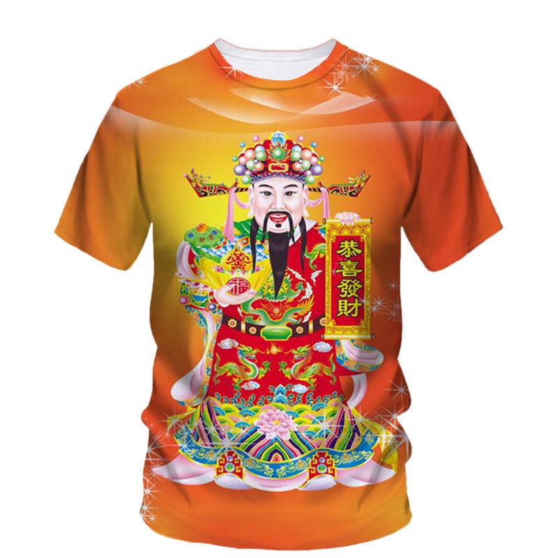 3D God Of Wealth Printing Men T-shirt Chinese New Year Graphic T-shirts For Men Fashion Cool Streetwear Short Sleeve Women Clothes