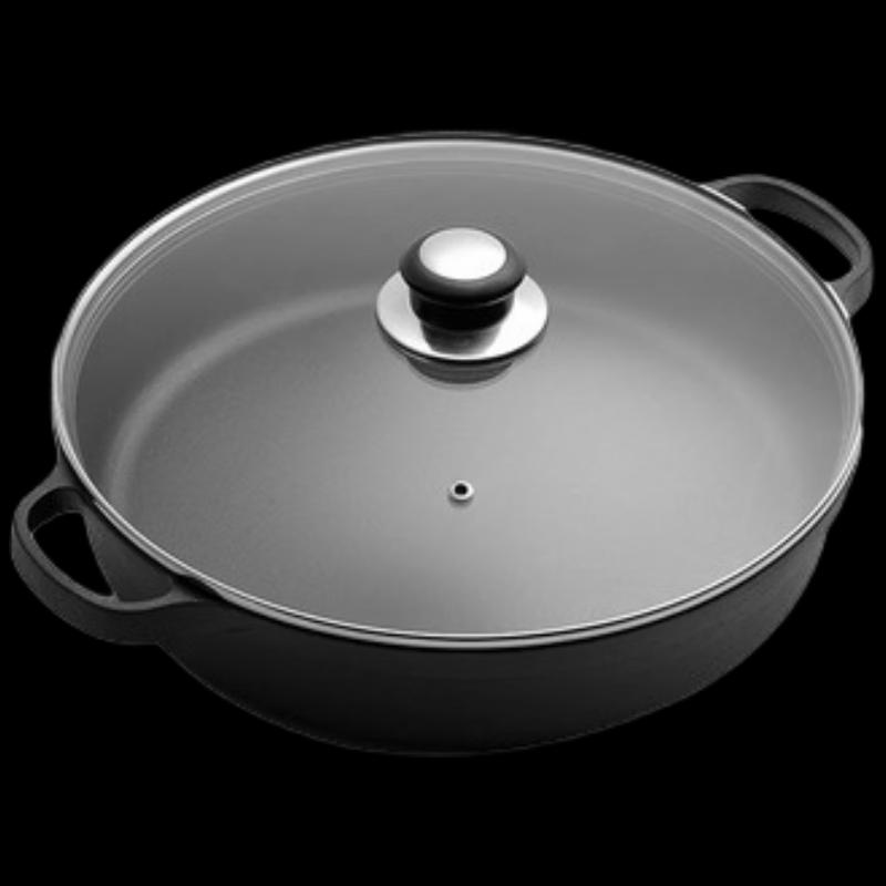 ZISIZ Gusseisen-Flachbodenpfanne mit Glasdeckel