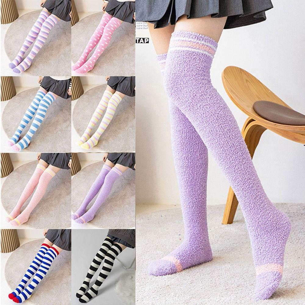 Lange Über-Knie-Socken Korallenrot Samt Warme Beinbekleidung Flauschige Damen-Kniestrümpfe Winter