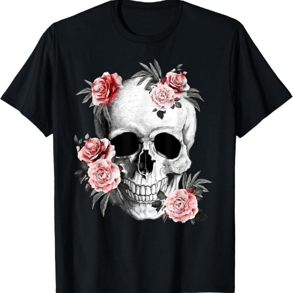 Blumen Zuckerschädel Rose Blumen Mykologe Gothic Goth T-Shirt