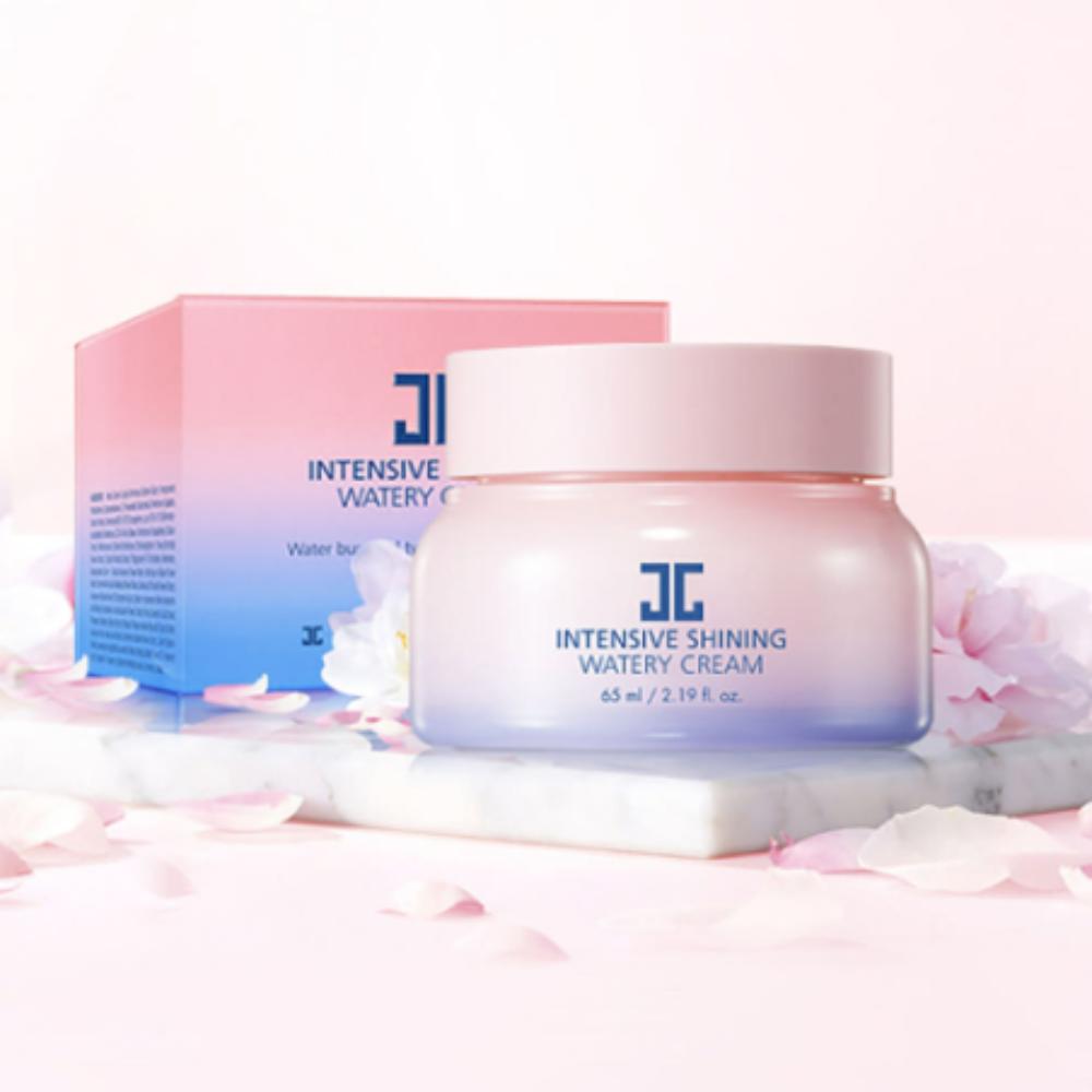 Die Intensive Shining Watery Cream ist eine feuchtigkeitsspendende revitalisierende Creme, die entwickelt wurde, um fahle, müde Haut in einen strahlenden und hydrierten Teint zu verwandeln.. Diese „wässrige Creme“ zeichnet sich durch eine einzigartige, leichte Textur aus, die bei Kontakt in Feuchtigkeit übergeht und sofort ohne jegliches Fett einzieht.. Angereichert mit einem Kirschblütenextrakt und einem aufhellenden Komplex, gleicht er den Hautton aus und verstärkt die natürliche Ausstrahlung.. Es enthält außerdem fermentierte Extrakte und Pflanzenöle, um die Feuchtigkeitsbarriere der Haut zu stärken und sicherzustellen, dass Ihre Haut den ganzen Tag über „strahlend“ und taufrisch bleibt.. Es ist der perfekte letzte Schritt, um den begehrten koreanischen „Glass Skin“-Glow zu erzielen.
