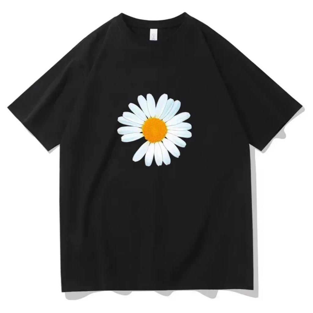 T-Shirt im koreanischen Stil mit kleinem Gänseblümchen-Print Sommer Kurzarm Sweatshirt Hip Hop Streetwear y2k Vintage Unisex T-Shirt Fans 01336