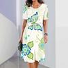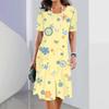 Damen Sommerkleid Kurzarm Blau Floral 3D-Druck Rundhalsausschnitt Mode Partykleid