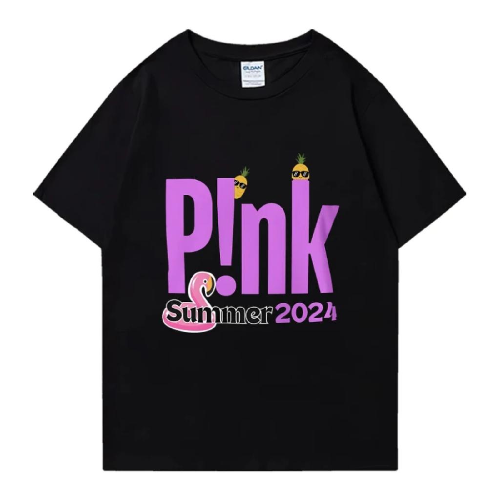Hot Singer Pink P!nk Summer 2024 Printed black T shirt New Men Women Funny Fashion short sleeve T-shirts Unisex 100% Cotton Tops