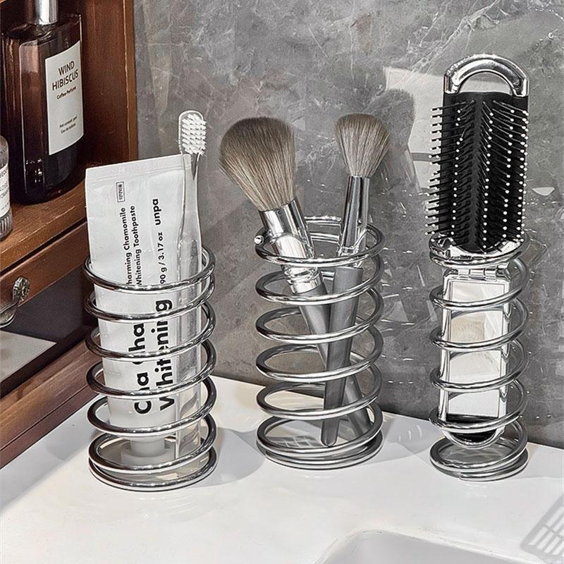 Edelstahl Zahnbürstenhalter Federförmig Schreibtisch Zahnbürste Zahnpasta Organizer Make-up Pinsel Halter für Badezimmer Tischplatte