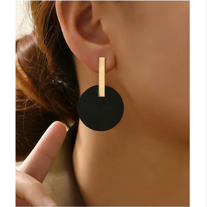 Fashion versatile temperament new geometric square round pendant earrings three-dimensional earrings earrings