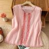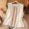 Retro Old Money Stil Bestickte Leinenweste Damen Ärmellos Sommer Baumwolle und Leinen Unterhemd mit Oberteil