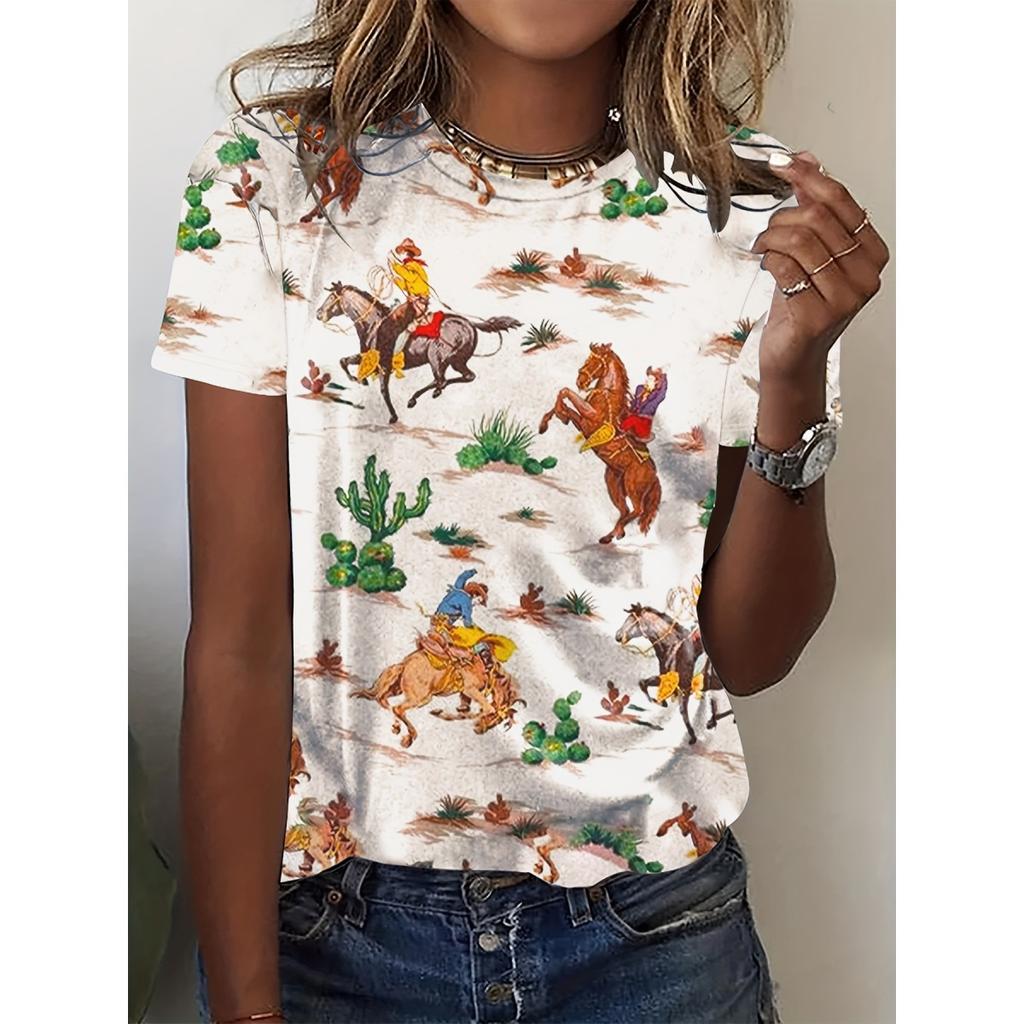 Women's Summer Short Sleeve Round Neck Character Abstract Print T-Shirt