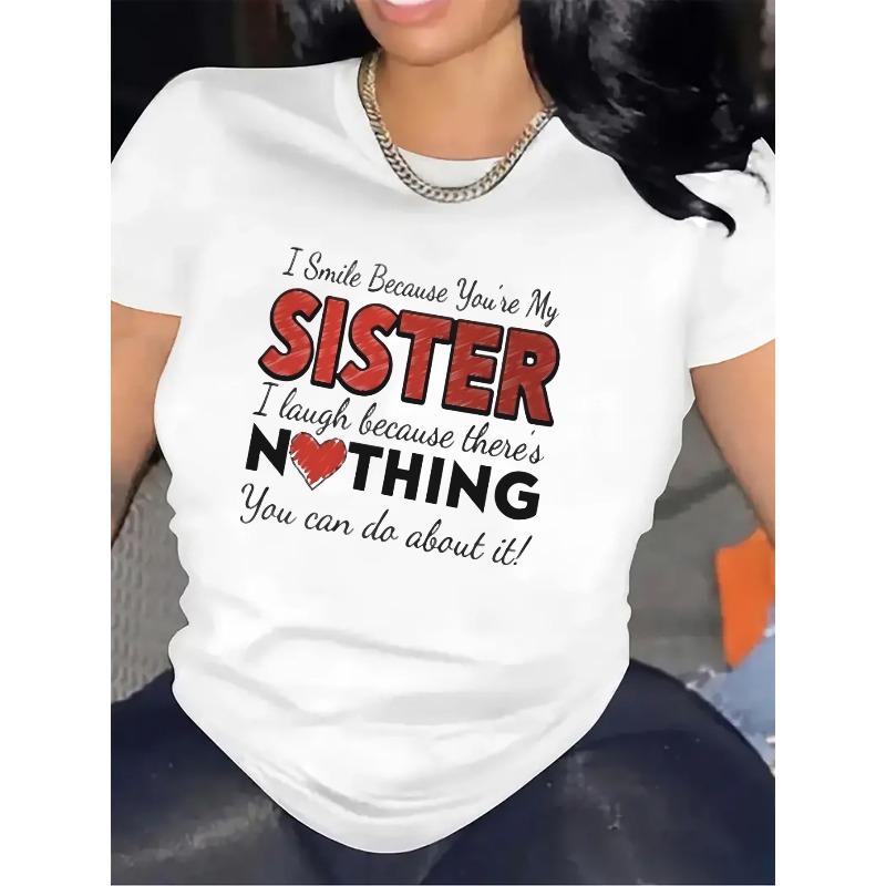 Europäische Größe Schwestern-Thema Schwesternschaft Grafik-T-Shirt - Atmungsaktives Polyester Kurzarm Rundhals Lässiges Oberteil, Schwarz-Weiß Schwestern-Print