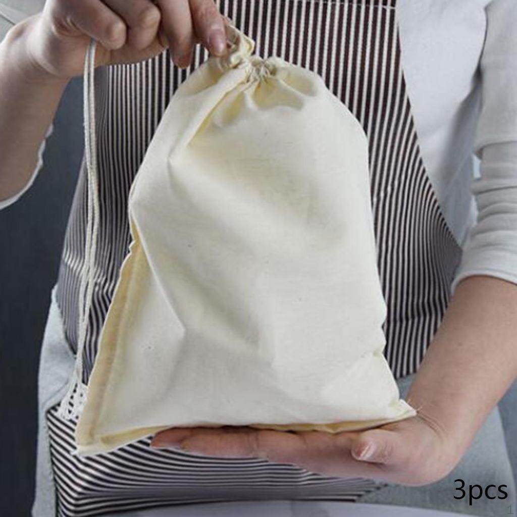 3 Stück Speisesiebbeutel Musselin mit Kordelzug Kaltaufgusskaffee Nussmilch für