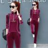 Gold Velvet Set - Women's Fashion Spring-Autumn Round-neck Casual Sportswear Sweater Set of Two Pieces