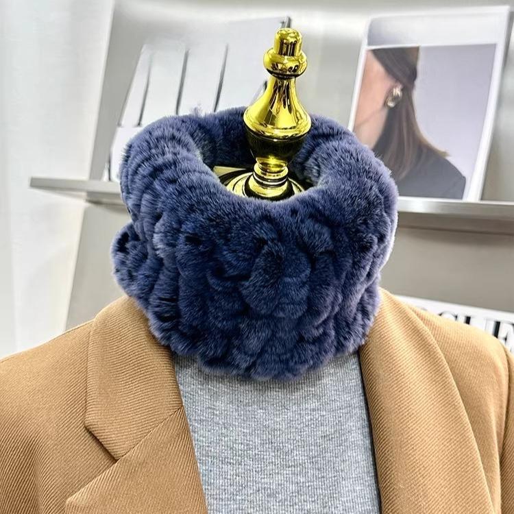 Korean Version of Cute Real Rex Rabbit Hair Neck Cover Winter Elastic Mesh Scarf Headband Versatile Plush Headgear Warm Scarf Women