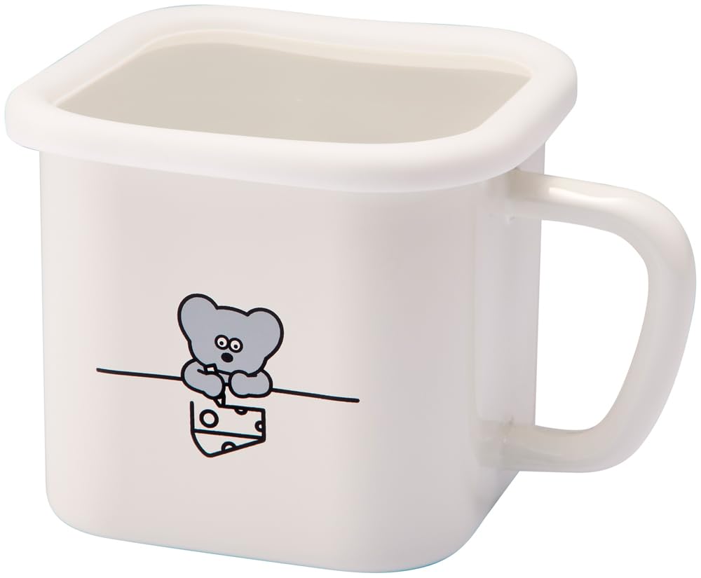 Toyoho ANDY THE MOUSE Emaille Mehrzweck-Quadrattopf, Weiß, Größe: Ca.. B17,8 x T14 x H11,8, AMJ-2301