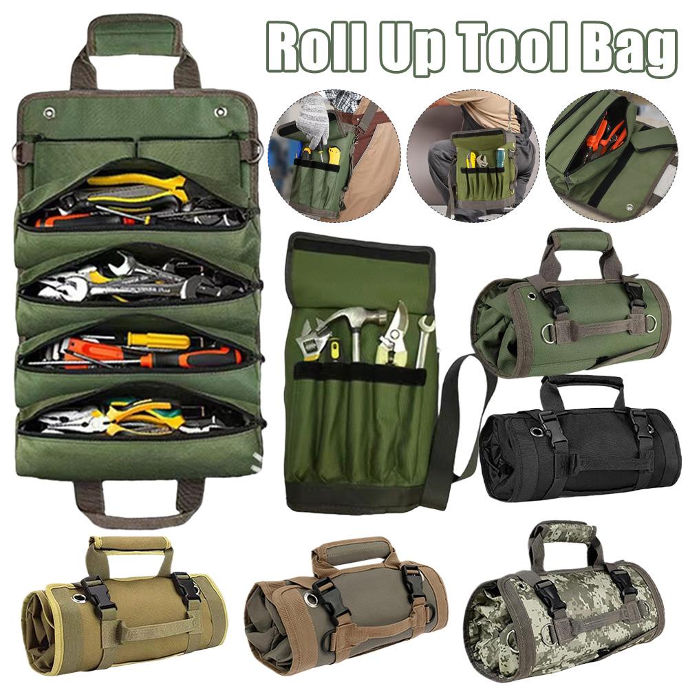 Multifunctional Roll Up Tool Bag Large Capacity Oxford Hanging Tool Bags Wear-Resistant Electrician Hardware Tools Organizer