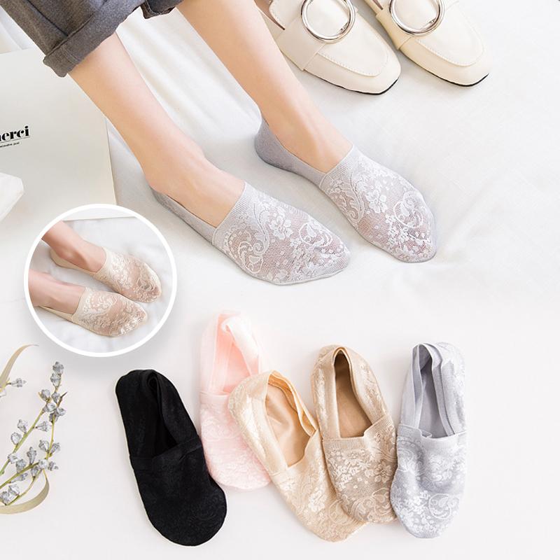 Non Slip Heel Ladies Lace Boat Socks Pure Cotton Breathable Low Cut Invisible Ankle Socks Women Summer Thin Casual Socks