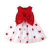 Sommer Neues Mädchen Prinzessinnen-Stil Kleid Rot und Weiß Herz Schleife Lebendiger Niedlicher Stil